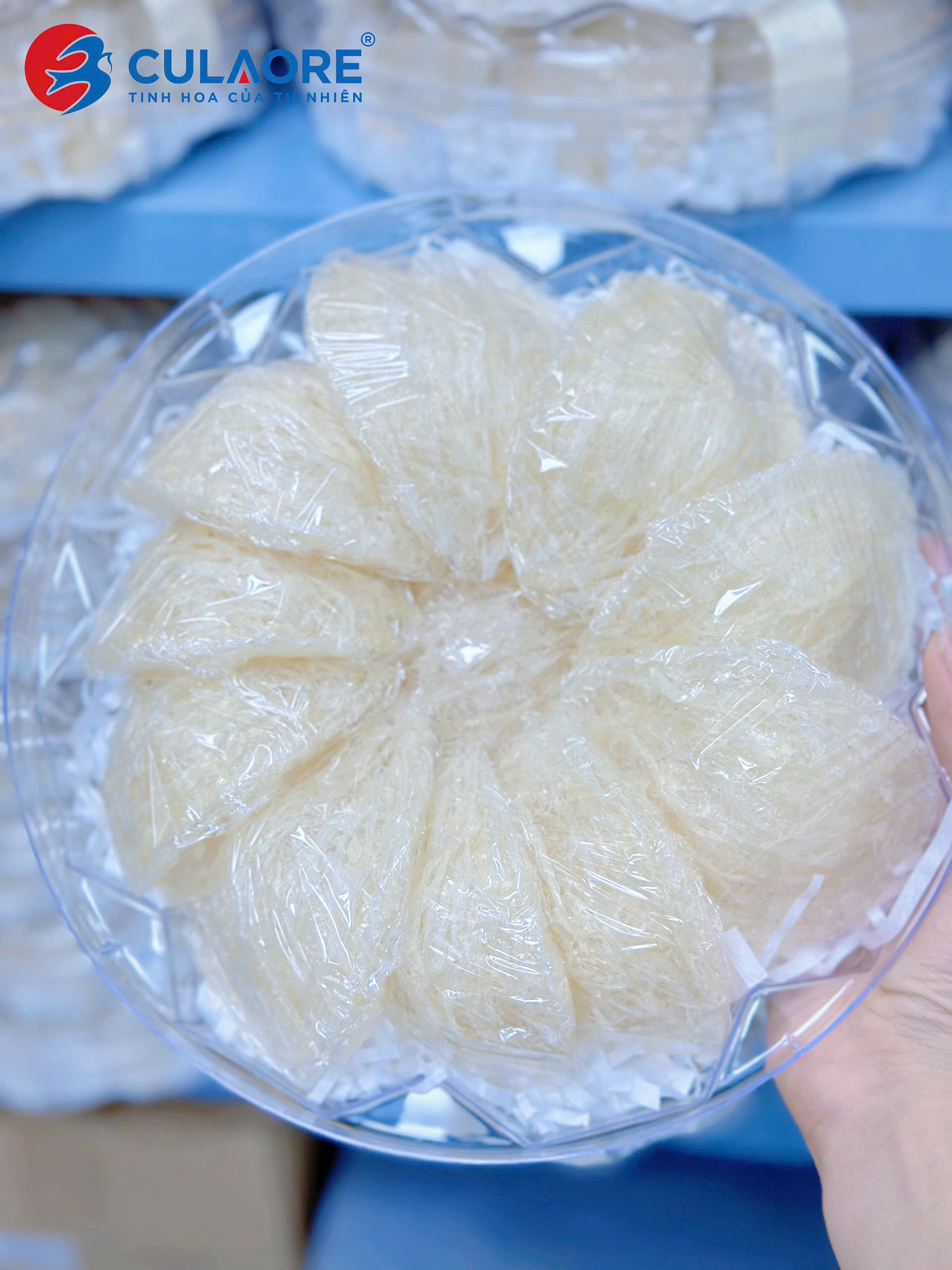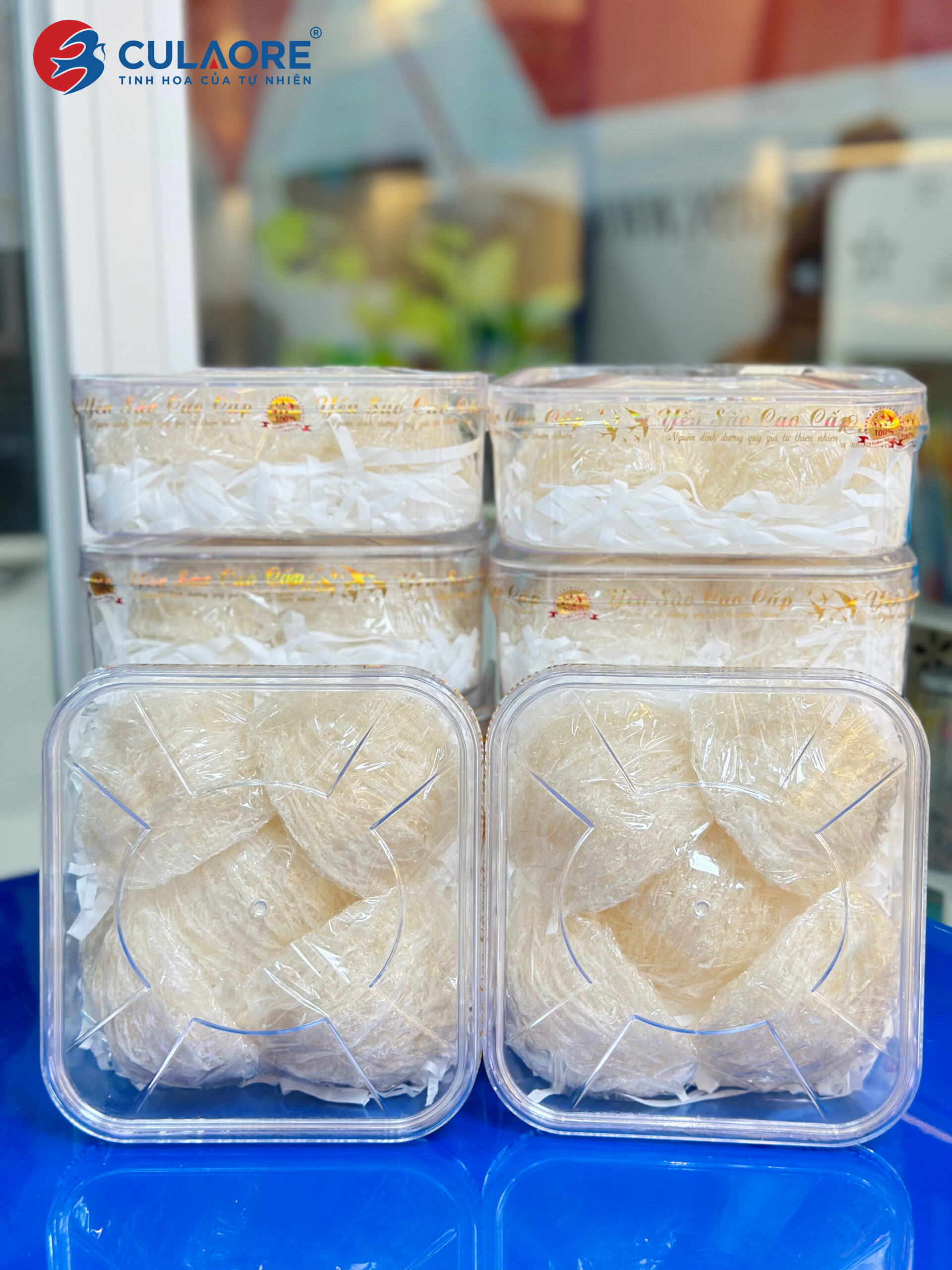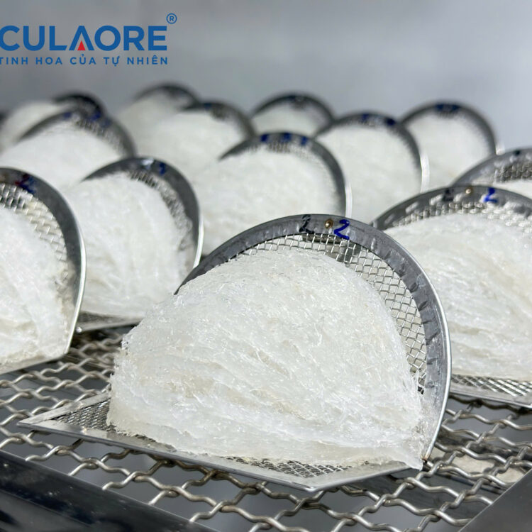 Yến tinh chế cao cấp CULAORE là dòng yến sơ chế có hình dạng cánh sen, tổ đồng đều, trọng lượng giữa các tổ gần như nhau. Sản phẩm vẫn giữ nguyên được mùi đặc trưng của yến, có sợi phồng, màu trắng ngà và có tỷ lệ 50-70% là sợi dài và phần bụng có sợi ngắn.