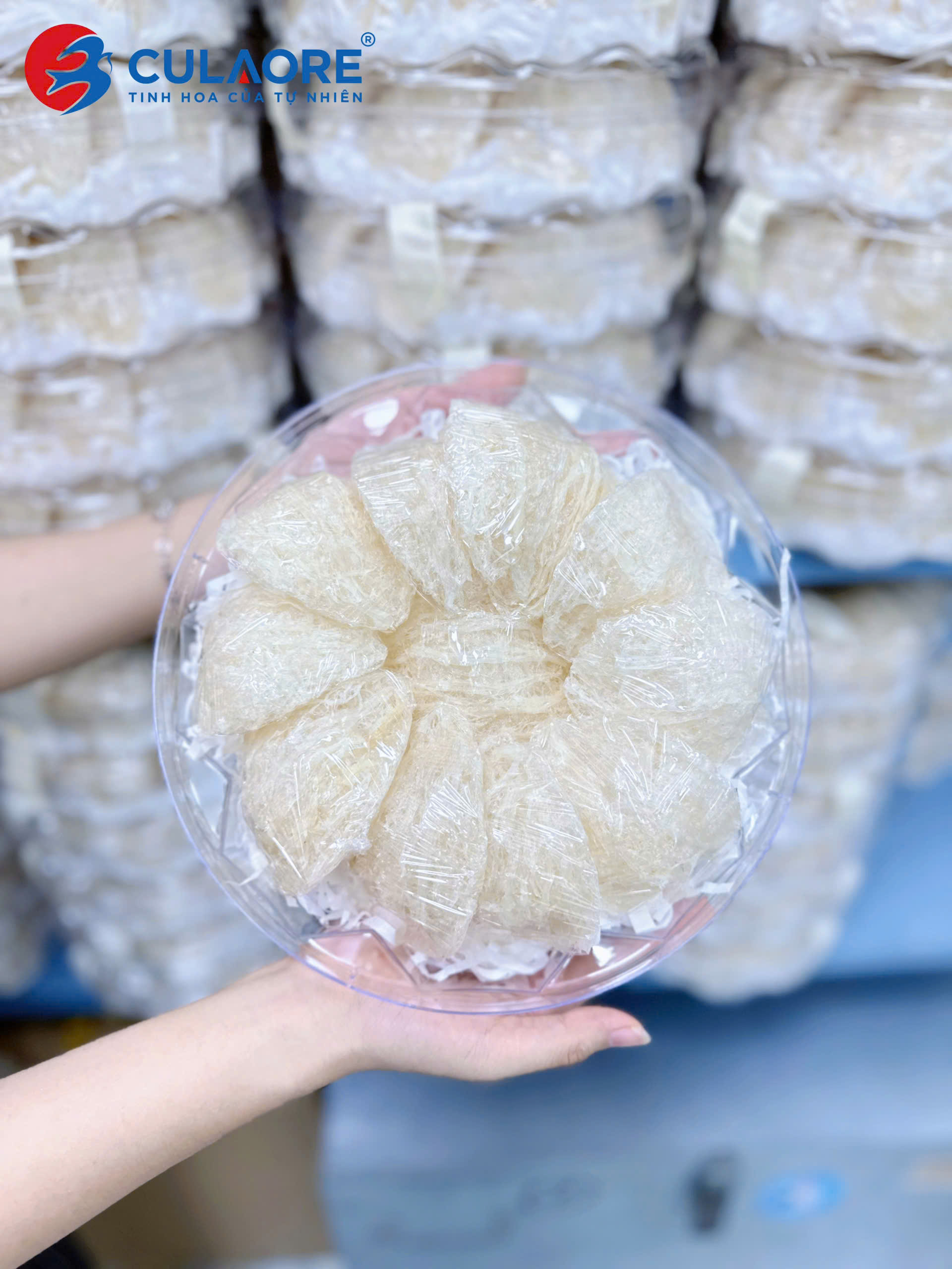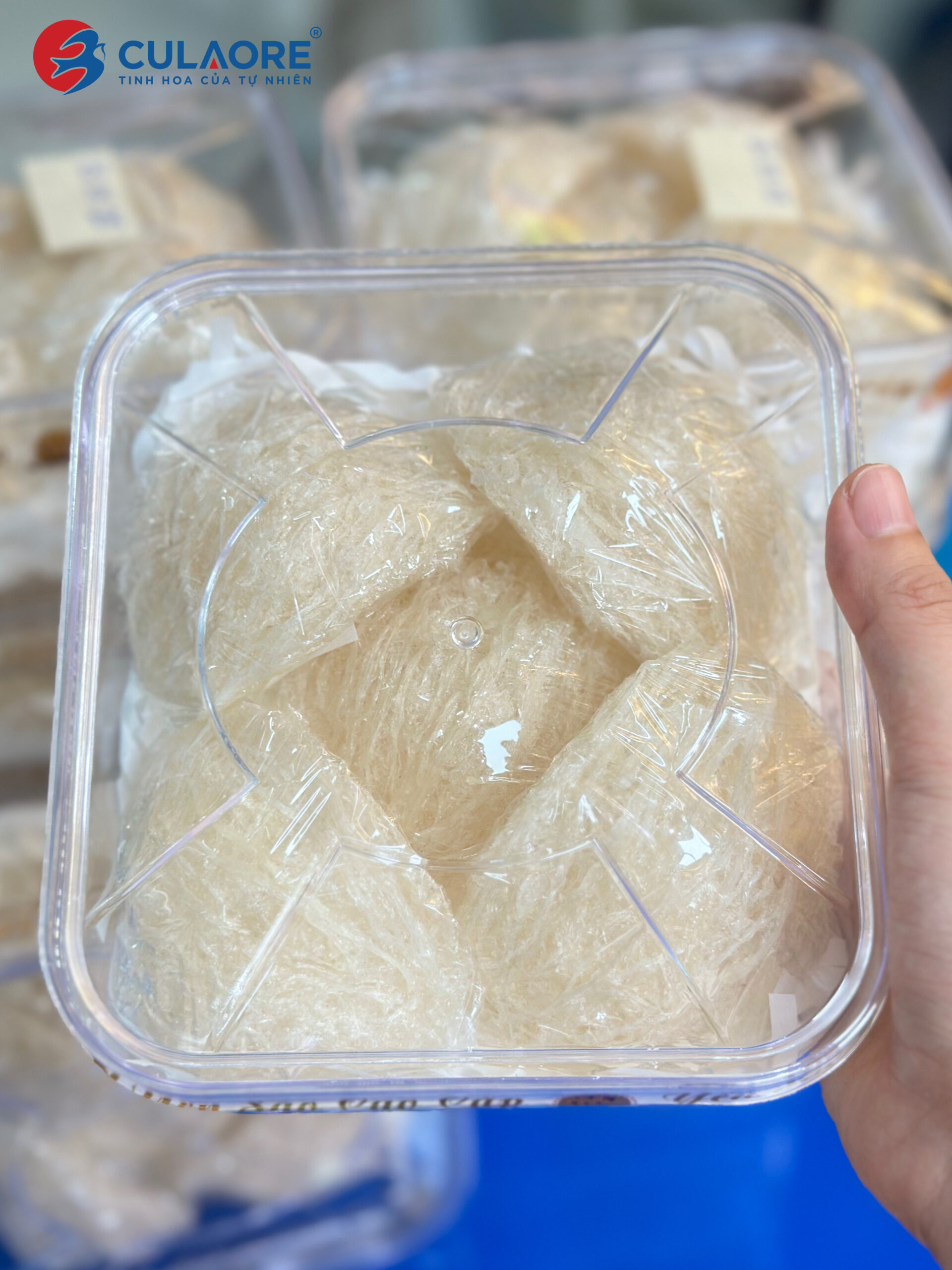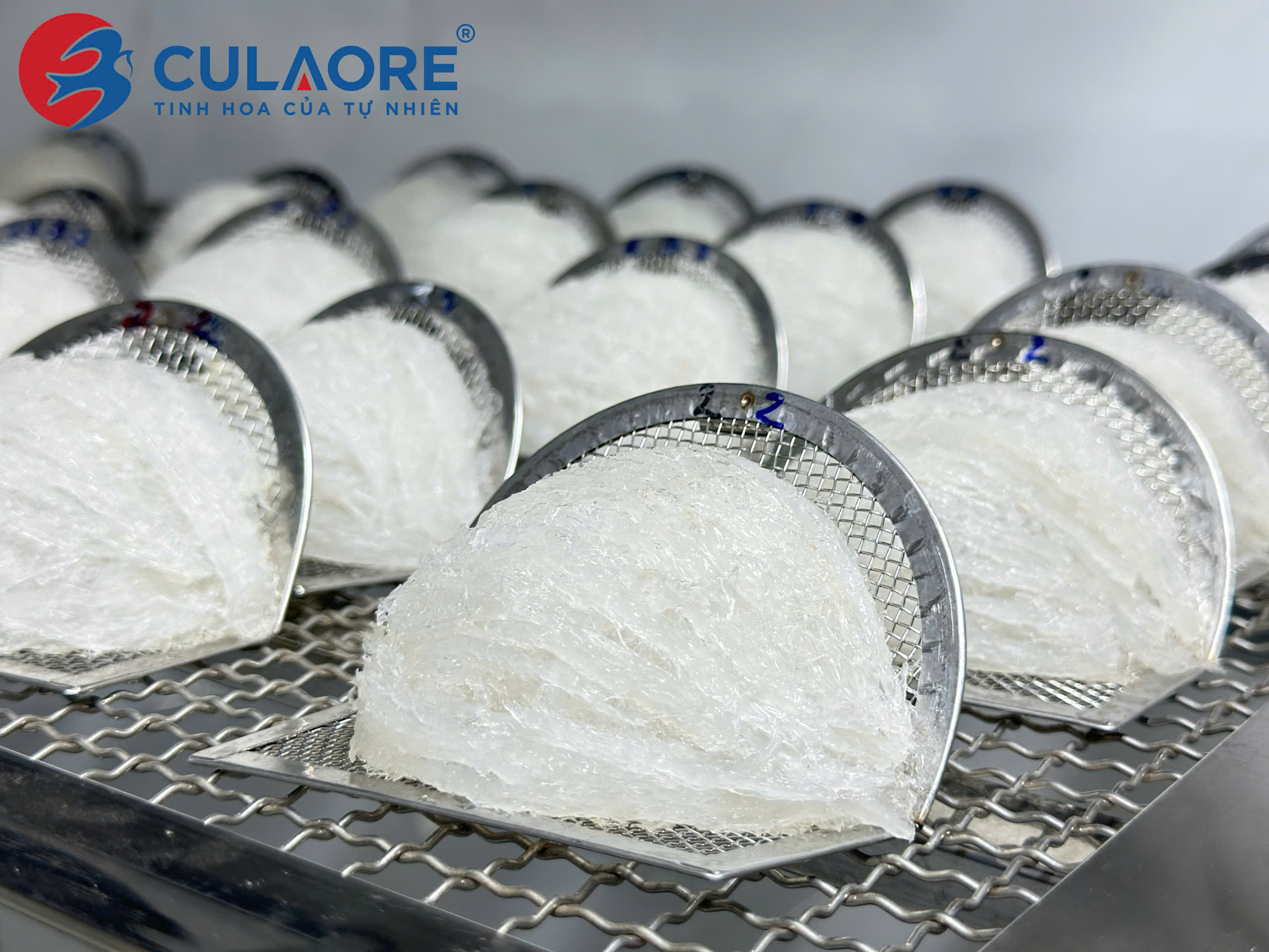 Yến tinh chế cao cấp CULAORE là dòng yến sơ chế có hình dạng cánh sen, tổ đồng đều, trọng lượng giữa các tổ gần như nhau. Sản phẩm vẫn giữ nguyên được mùi đặc trưng của yến, có sợi phồng, màu trắng ngà và có tỷ lệ 50-70% là sợi dài và phần bụng có sợi ngắn.