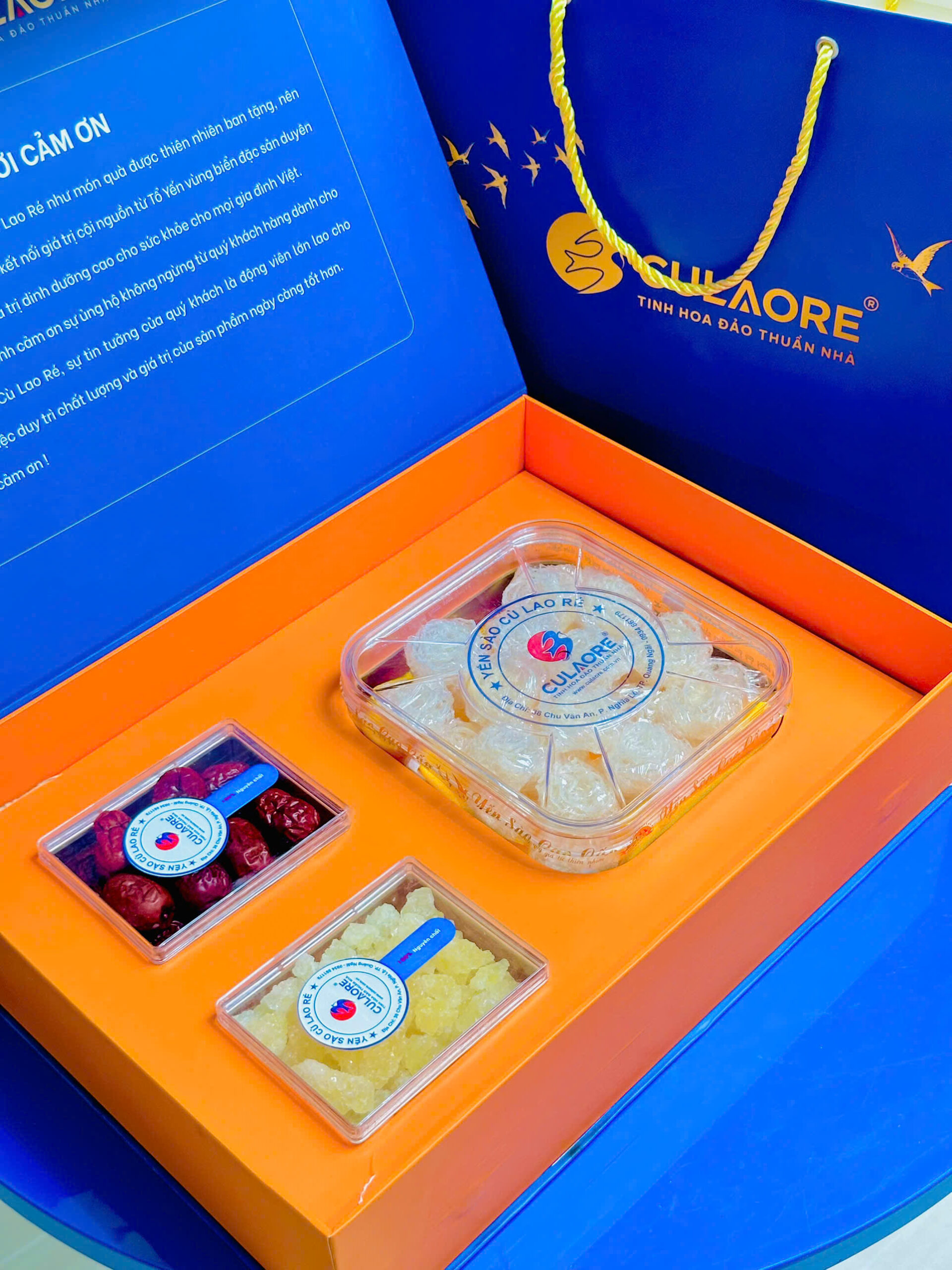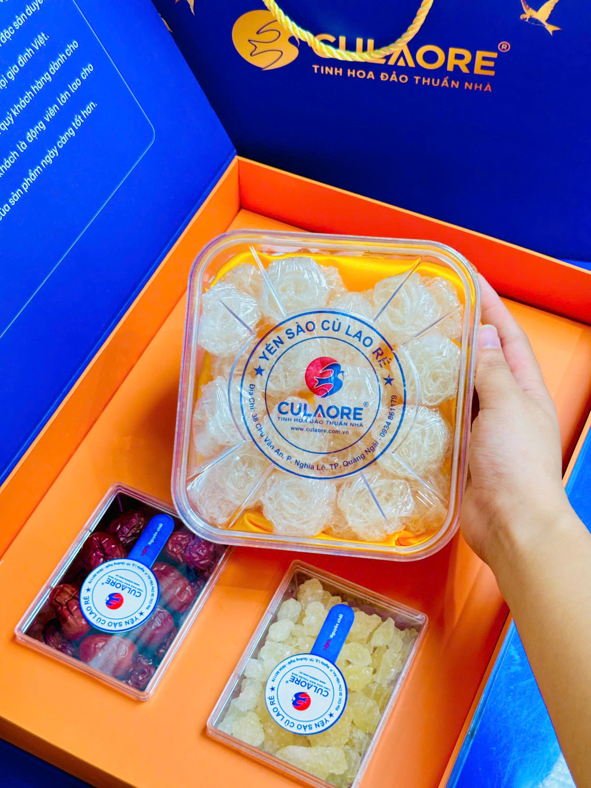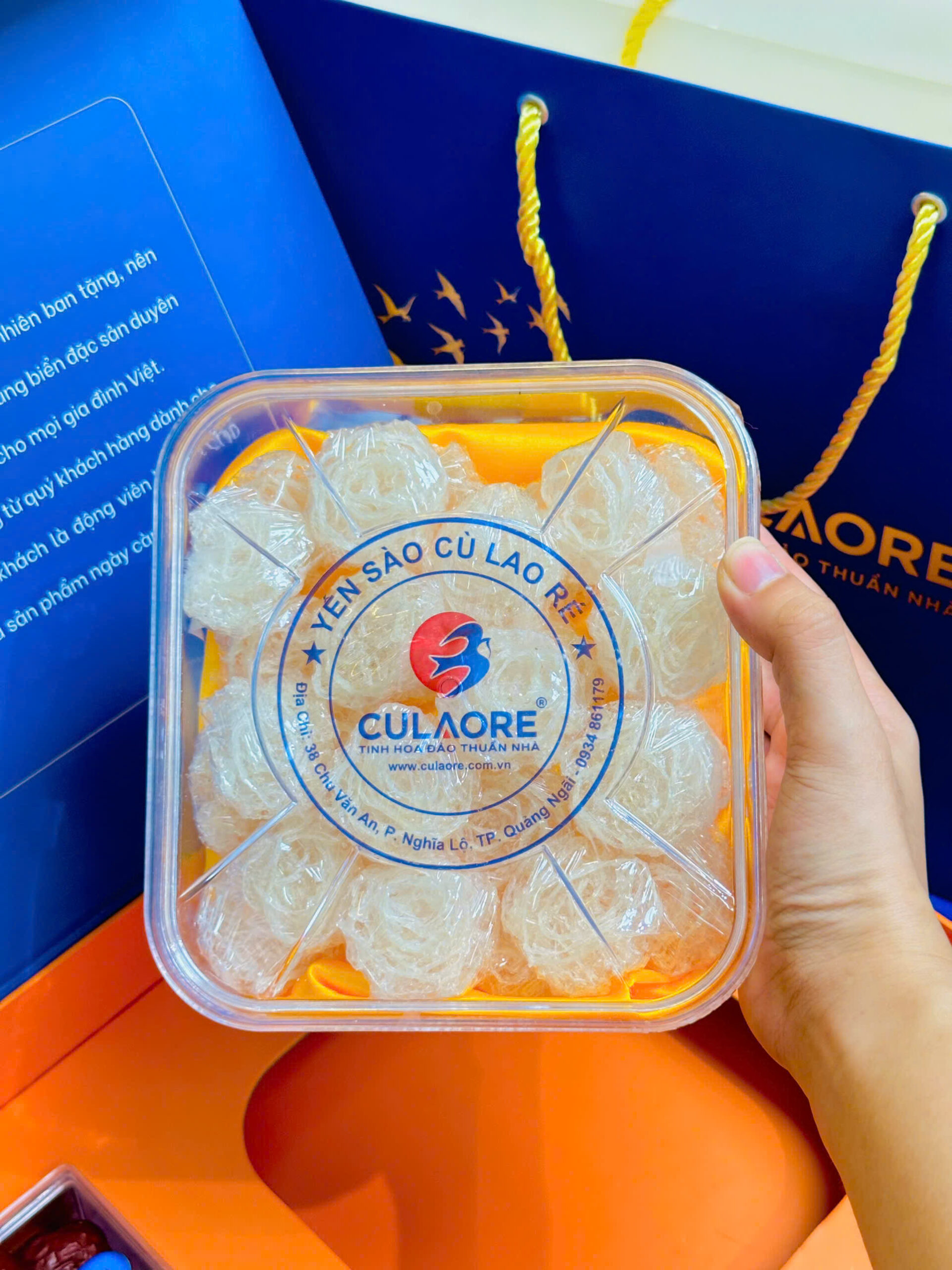 Yến tinh chế viên hoa hồng CULAORE là dòng yến sơ chế có hình dạng viên hoa hồng, trọng lượng giữa các viên gần bằng nhau. Sản phẩm vẫn giữ nguyên được mùi đặc trưng của yến, có sợi phồng, màu trắng ngà, tỷ lệ sợi dài chiếm 50% còn lại là sợi ngắn và vụn yến.