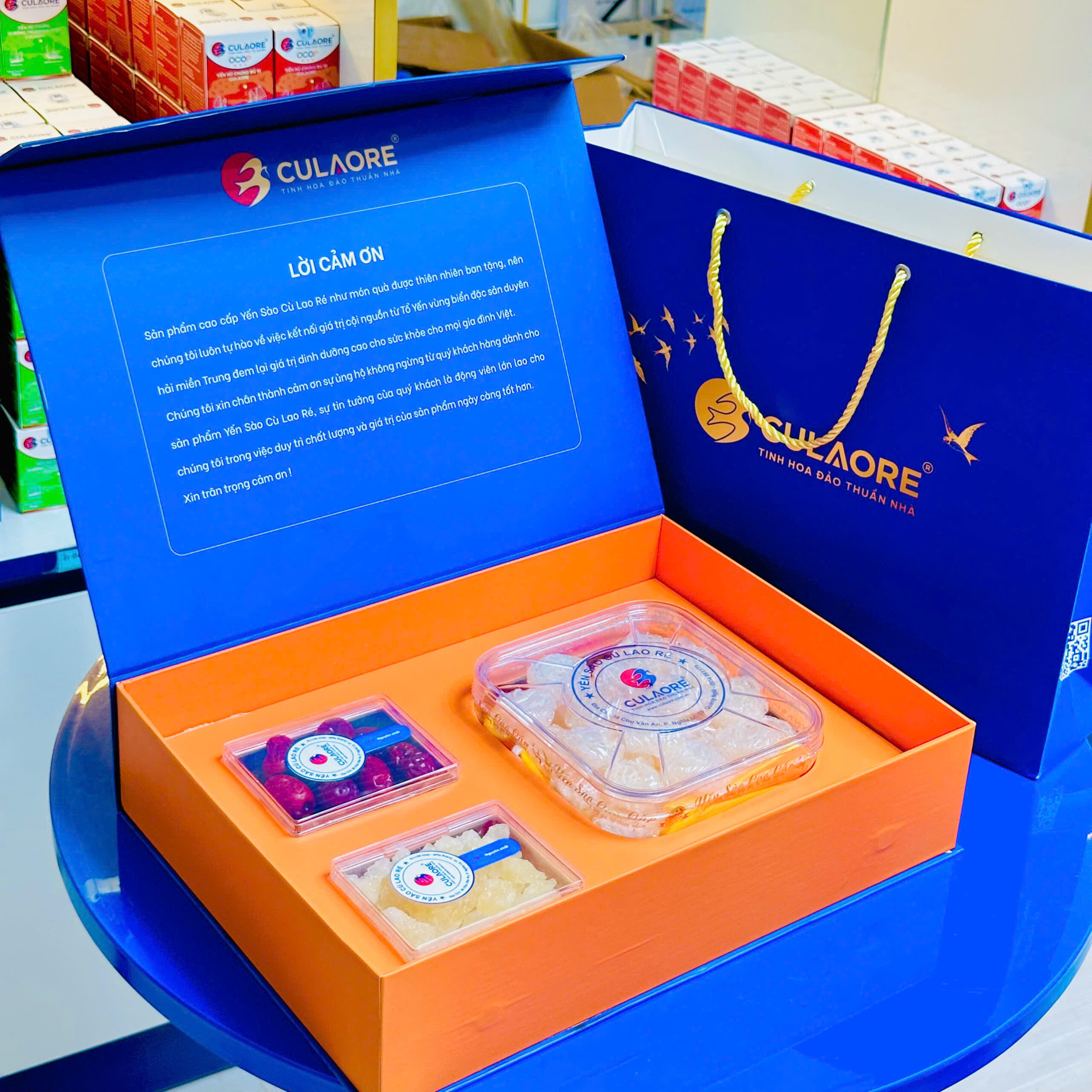 Yến tinh chế viên hoa hồng CULAORE là dòng yến sơ chế có hình dạng viên hoa hồng, trọng lượng giữa các viên gần bằng nhau. Sản phẩm vẫn giữ nguyên được mùi đặc trưng của yến, có sợi phồng, màu trắng ngà, tỷ lệ sợi dài chiếm 50% còn lại là sợi ngắn và vụn yến.